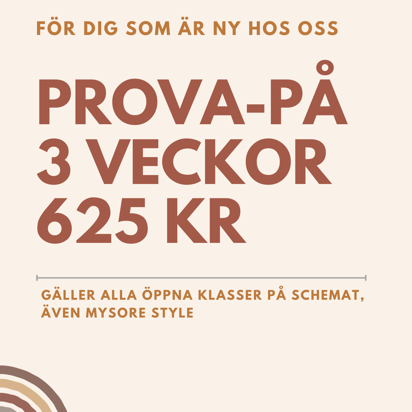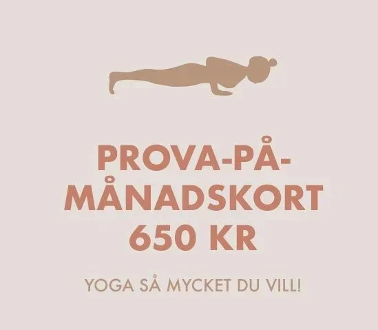 Har du inte yogat hos oss tidigare har vi ett PROVA-PÅ KORT för 625 kr, gäller 3 veckor på alla våra yogaklasser på vårt ordinarie veckoschema. Du hittar länk här nedan eller ladda ner vår app YogaDevi för att köpa kortet. Du bokar dig digitalt med ditt kort på de klasser du önskar, superenkelt.